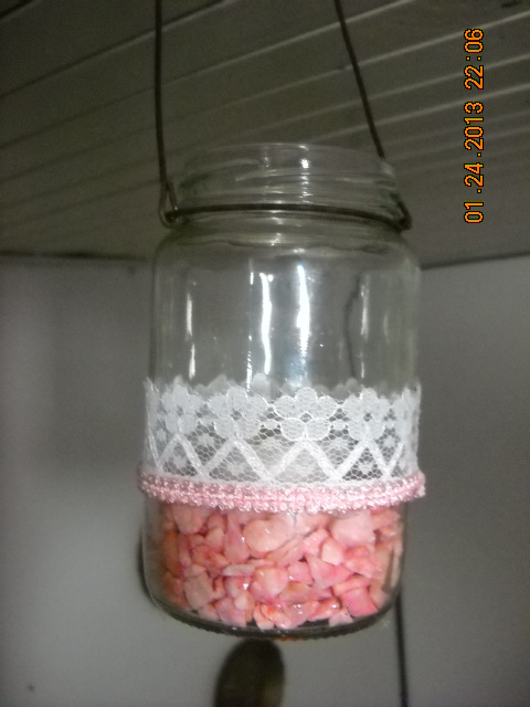 Como la reunion era intima, la realizamos en mi casa, el dia era hermoso entonces todos los preparativos fueron en el exterior de la casa. y estos portavelas adornaban el patio.