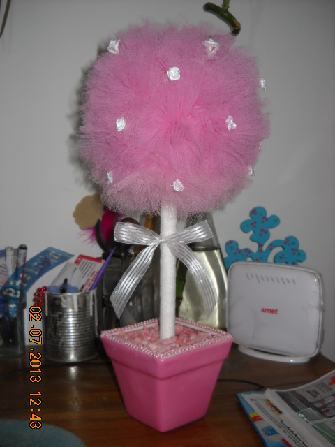Topiario que los usamos para decorar la mesa donde se encontraba el albun de firmas.