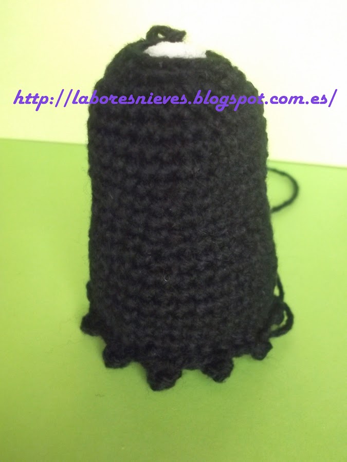 entre las vueltas 6ª y 7ª se hacen las puntas del vestido