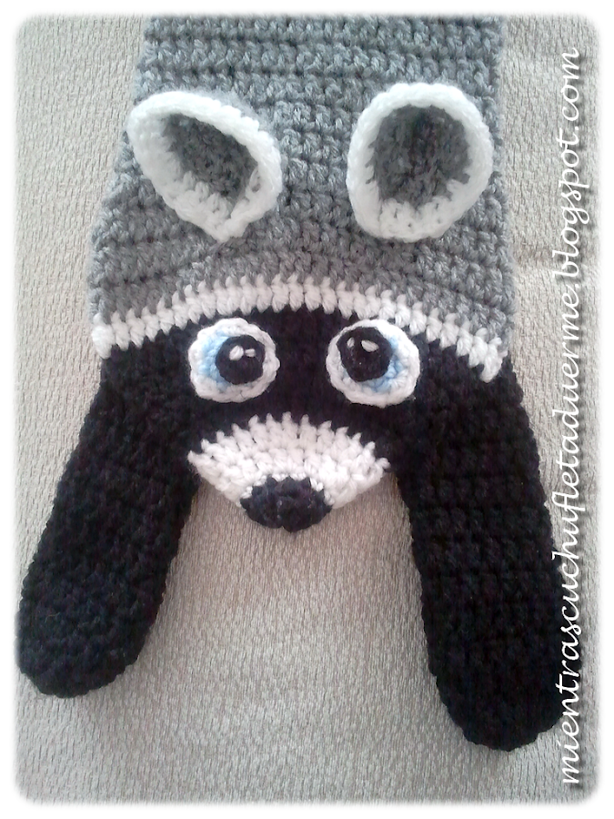 Esta bufanda y otra que viene en camino son para las primichufletas, para que estén abrigaditas cuando llegue el frío. Son unos mapaches muy cariñosos, les encanta abrazar e ir asomados colgando del hombro. ¡Con esa cara de simpáticos apetece sacarlos a pasear ya!