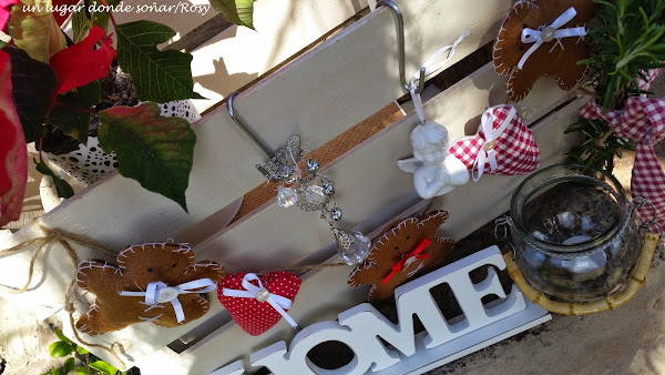 la guirnalda y los arbolitos los hice hace dos años , también he decorado con romero , que me encantaaa. y con mi angelito..........jiijiji .... una pascua ... un farolillo.... os gusta...... ???? el home , de la revista el mueble , que he pillado por casualidad ......
