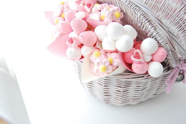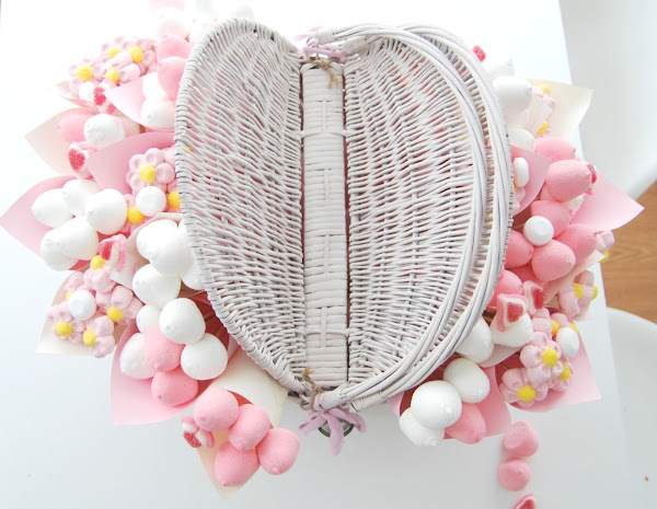 Y lo más divertido, empezar a hacer ramos de chuches, en este caso mezclando sólo rosas y blancos:
