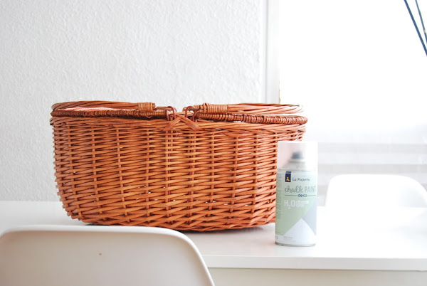 Yo utilicé esta de mimbre natural, pero tenía claro que necesitábamos un color más "dulce", así que me decidí por este spray de chalk paint Rosa Capricho de La Pajarita. Es un rosa muy, muy suave, casi blanco, perfecto para que no quedase demasiado recargado ni demasiado "rosa". Al fin y al cabo ya vamos a sobrecargar con chuches luego...