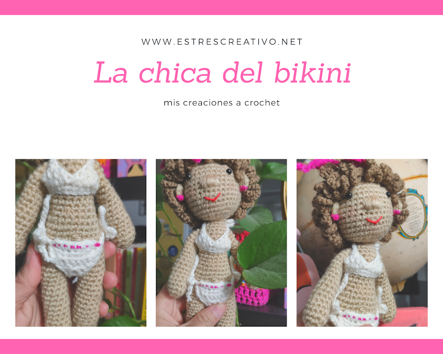Compartiendo mis amigurumis es de la mejor manera de expresar el amor del arte a crochet, la ventaja de tejer es que puedes crear un sin fin de personajes cuando aprendes lo básico, en esta ocasión la idea de tejer una chica con bikini fue porque se llegan los tiempos calídos, las idas a la playa o al balneario, tomar baños de sol desde tu hogar, aquí en Estados Unidos puedes ver a las personas en los parques en bikini tomando baños de sol, o desde los balcones de sus apartamentos, la razón no es por presumir los cuerpos es que en el invierno no se tiene la misma facilidad de tomar el sol, y escaseamos de vitamina D por los largos periodos de invierno, sale el sol pero por el frío que hace no puedes salir a tomar el sol como si fuera primavera o verano jejeje de hecho en el verano los días con sol son los más helados, ya que no puedes salir con la misma frecuencia ya que en ocasiones puedes congelarte.