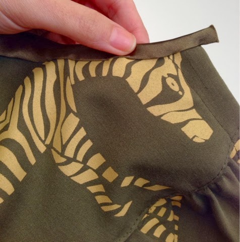 Nuestra amiga Cristina Muelas emplea la cinta al bies, en este caso de raso, para ribetear y pulir el escote de su original camisa safari, tal y como podemos ver en su blog de ensueño Cosas de Butterflies. Sin duda le ha dado a la camisa más categoría. ¡Buen acierto!