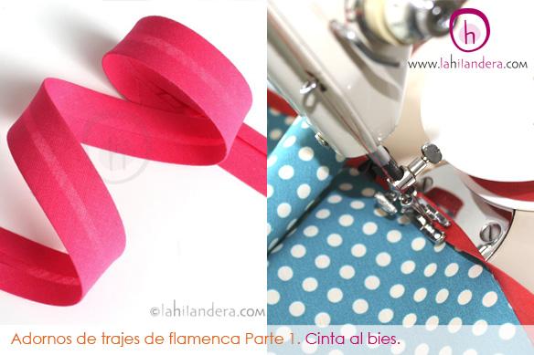 Con otros fines la emplea Isabel Mota, bien como adorno del traje de flamenca, cosiéndola en el borde de los volantes de capa, bien para darle un mejor acabado, colocándola en las sisas o tapando costuras interiores, según nos lo enseña en su precioso blog La hilandera en un post escrito por María José. Por cierto, que paséis una buena Feria de Abril. ¡Ojalá pudiera estar allí!