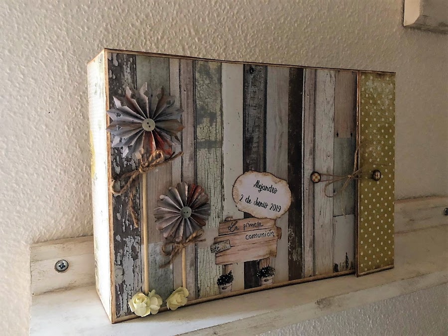 Y este conjunto es lo que he preparado para él de manera muy especial: Álbum, libro de firmas y marco, todo ello guardado en una caja libro.