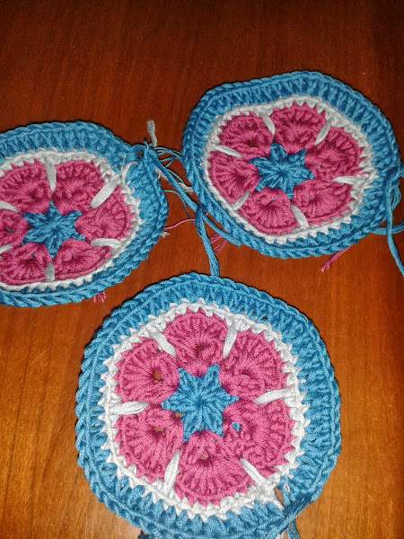 Estos son los dos bloques anteriores ya acabados el de Pilar y el mio. Ahora a por el siguiente Aqui lo tenemos otra estrella "me encantan", es la estrella de dientes de sierra. En el dibu ...