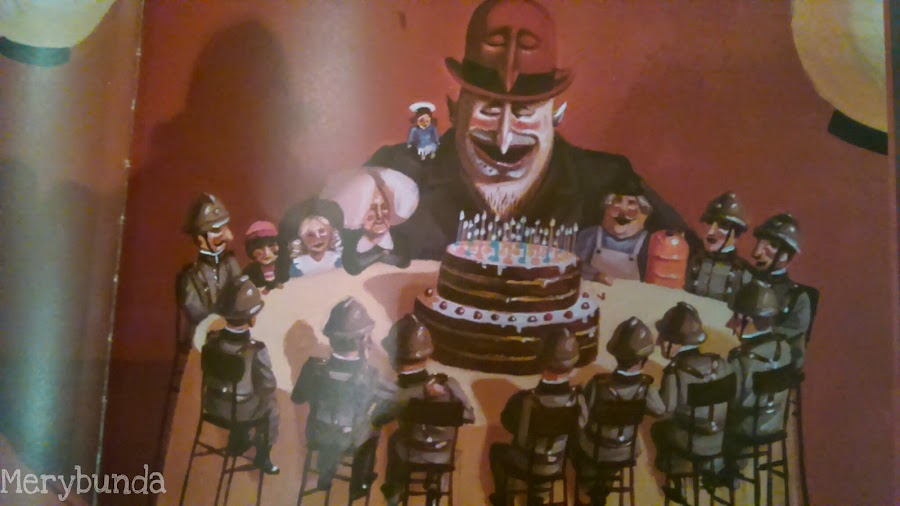 Desde ese momento, siempre celebrán el cumpleaños de la abuela: las nietas,la abuela,el butanero (que se debió comer en otro cuento) el.ejército,la hormiga y el tragaldabas....
