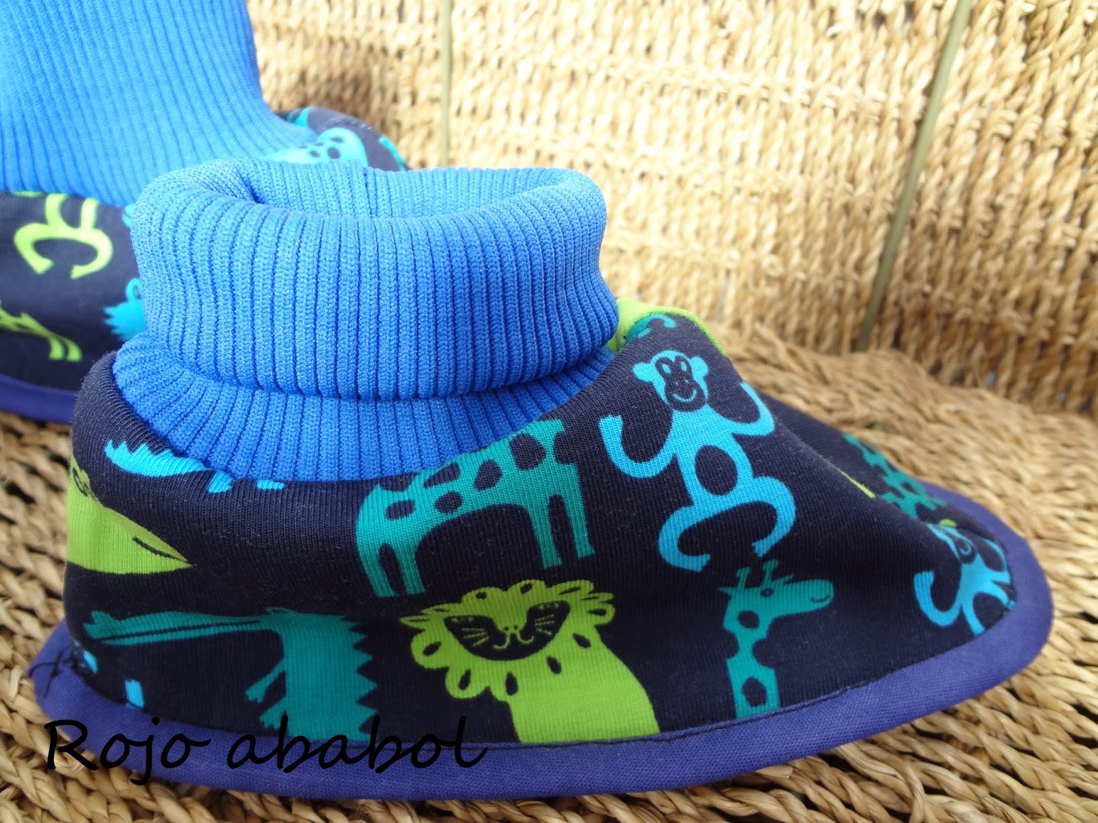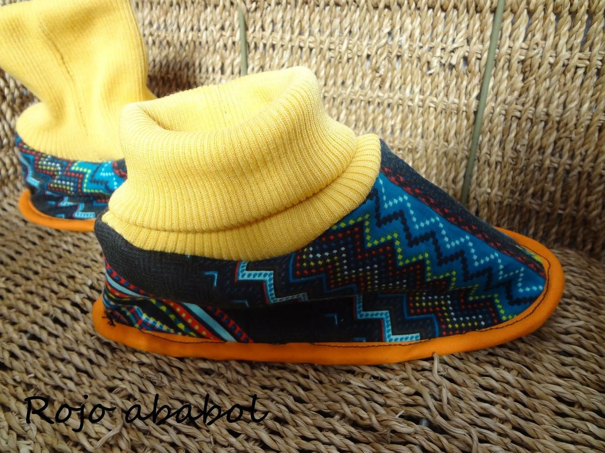 Están cosidos con una capa de polar y otra de punto camiseta. Bies uniendo la suela con el cuerpo y puño en el tobillo. Qué os parecen?