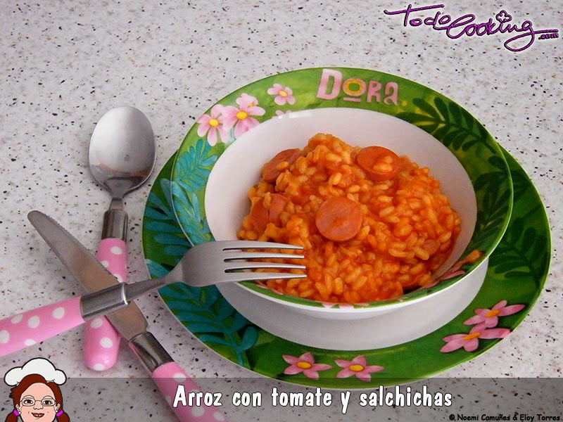Arroz cremoso con tomate y salchichas