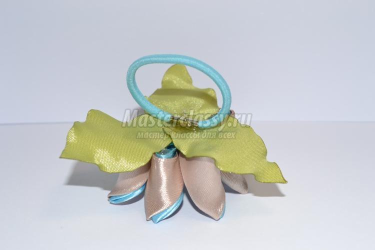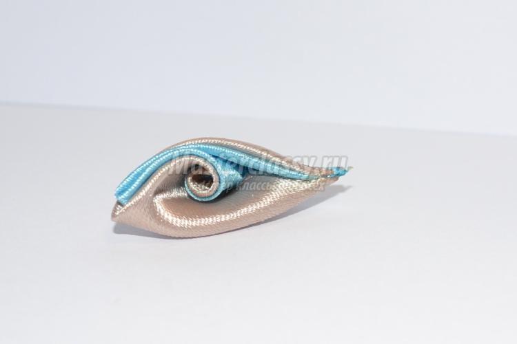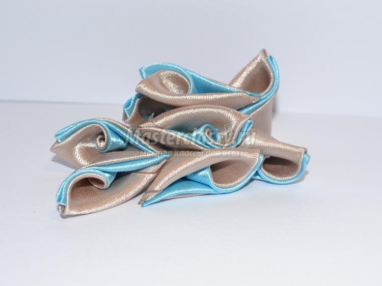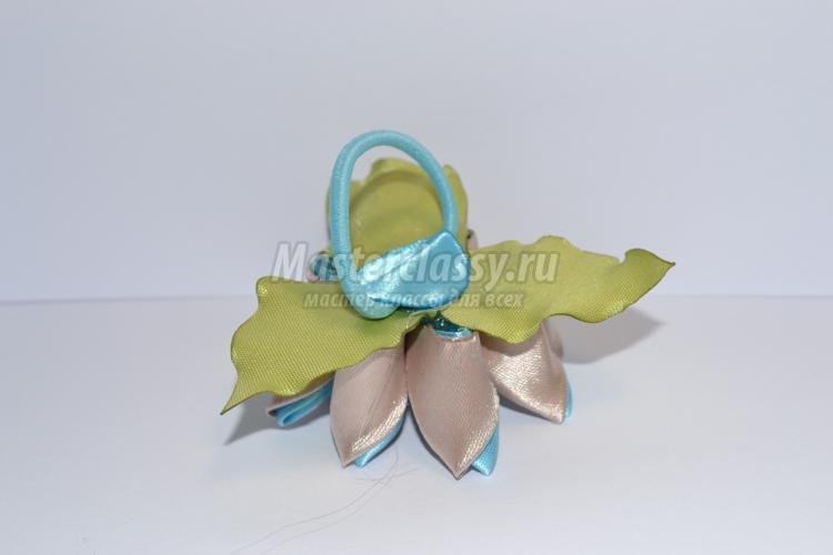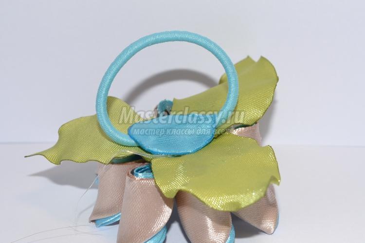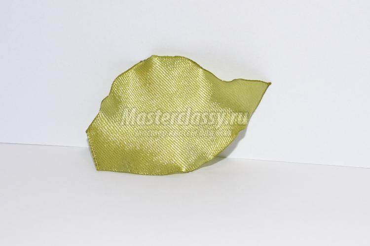 Las hojas de este ejemplo son muy simples. Necesitamos tres de ellas para decorar una liga de cabello. Ustedes pueden modificar el resultado a su gusto.