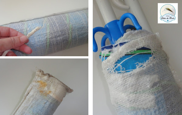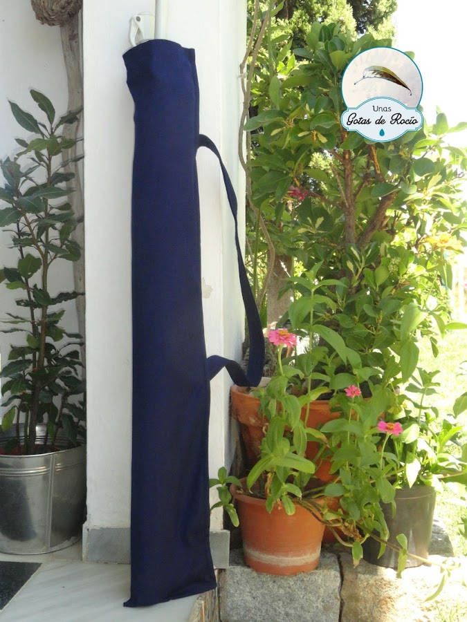 Se trata de un trabajo muy fácil, que vosotras, hábiles con la aguja sabéis hacer perfectamente, pero si no os apetece pensar, y buscábais un tutorial con el paso a paso, estáis en el lugar adecuado. Pues hoy el "Gota a gota" está dedicado a hacer una funda de sombrilla como esta: sencilla, funcional, fuerte y muy práctica.