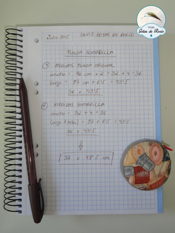 Como veis, de un modo u otro obtenemos los mismos resultados, es decir que deberemos cortar un trozo de tela de 36 x 93,5 cm. Pero como la funda original venía un poquito justa, yo le voy a dar 1 cm. más de ancho y 5 de largo.