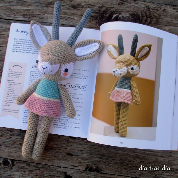 En total el libro trae 20 patrones diferentes y decidir por cuál comenzar es tarea complicada. Así que elegí en primer lugar tejer a Audrey la gacela, más que nada porque tenía en casa hilos de los colores necesarios y así podía comenzar a hacerla de inmediato (ya os he dicho que soy pelín agonía…)