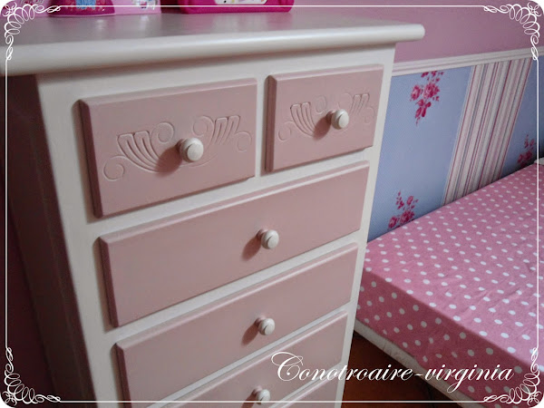 He pintado los muebles en blanco roto, y algunos detalles como cajones y pomos en color rosa palo, he utilizado chalk paint de Annie Sloan.