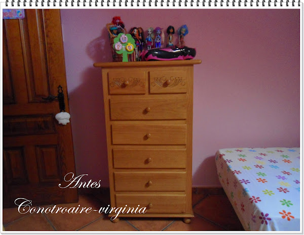 Y el armario, todo en blanco...........solo le cambie los tiradores de las puertas grandes por estos de florecitas, para darle una nota de color.