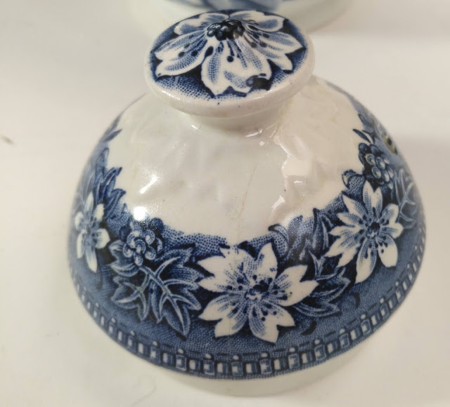 Marcado en verde, estas manchas son provocadas por la absorción de un adhesivo muy liquido en una superficie porosa, en este caso una loza. En estas zonas no hubo un buen aislamiento de los bordes de rotura y al final el adhesivo, aunque transparente y estable, ha manchado la pieza.Esta pieza esmaltada no necesitaría casi retoque cromático