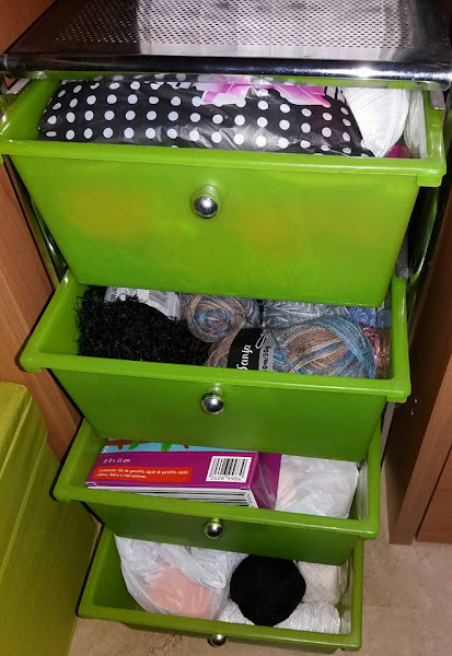 No todo el mundo puede disponer de una habitación o rincón donde tiene guardado TODO lo necesario, y lo qué vamos acumulando, como proyectos sin terminar, ovillos que compramos por si acaso, alguna vez, podré hacer esto o lo otro, etc, etc, etc..... Ya sabemos como va esto. Nos pasa a TODO/AS!!.