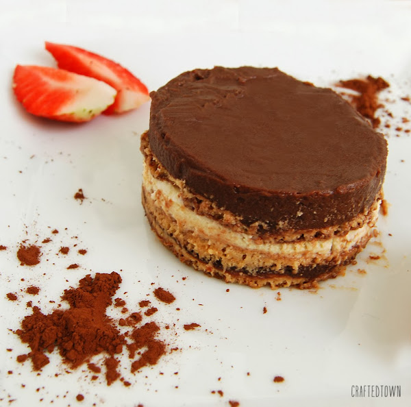 3. When the chocolate cream is cold it"s time to make the cake. Prepare a little bowl with some milk and pour 3 teaspoons of cocoa powder and mixed them well. Now dip every cookie into it and put them in the mould till you have the base cover up. Then spread a layer of chocolate cream and cover it again with a layer of milk wet cookies, onto this layer of cookies spread another layer of whipped cream and cover again with cookies. Finally spread a layer of chocolate cream and put it into to the fridge for a couple of hours cover with cling film. If you are using two little moulds, repeat the process again.
