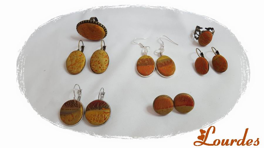 Mira el resultado de estas piezas en las que he mezclado arcilla y tintas al alcohol.