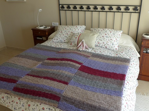 Porque sí, en efecto, esta manta no la he hecho yo, la ha hecho Juan, y ha resultado ser súper práctica, calentita, y bonita. Bueno, no voy a desmerecer el hecho de que he contribuido un poco a su creación, aunque sólo dando consejos, todo el trabajo lo ha hecho Juan.