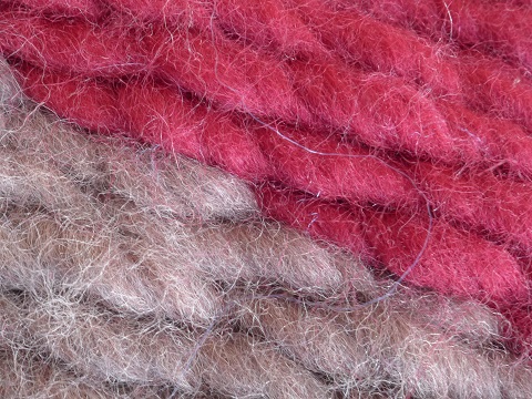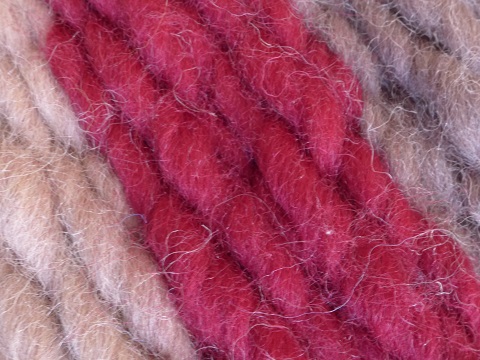 Como ya habéis podido imaginar esta manta está confeccionada con el mismo telar con el que hicimos la funda para el libro. La lana elegida en este caso fue Polaris de Drops, porque es 100% lana, porque es de las más gruesas que encontramos y porque nos gusta ese aspecto de cardado reciente, es decir, la fibra no está muy trenzada (¿entendéis a lo que me refiero?). Los colores elegidos fueron lila, gris, dos tonos de marrón y un granate que le da un toque diferente, pero muy acertado.