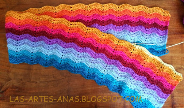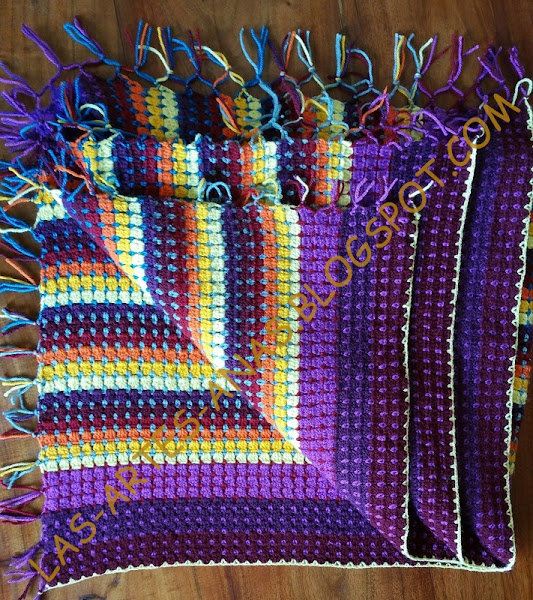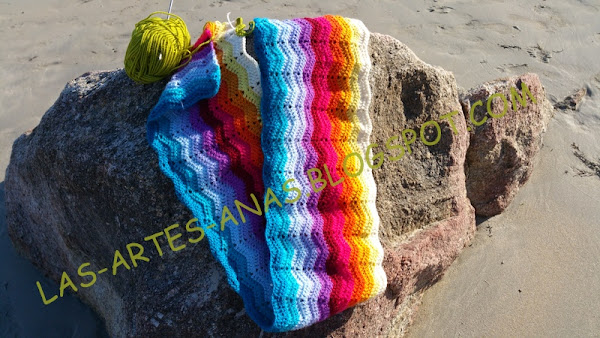 LA PRIMERA MANTA ES SUPER- ABRIGADA, la he diseñado con colores análogos y complementarios, siguiendo un gráfico quitado de la red, concretamente de TEJIENDO PERÚ