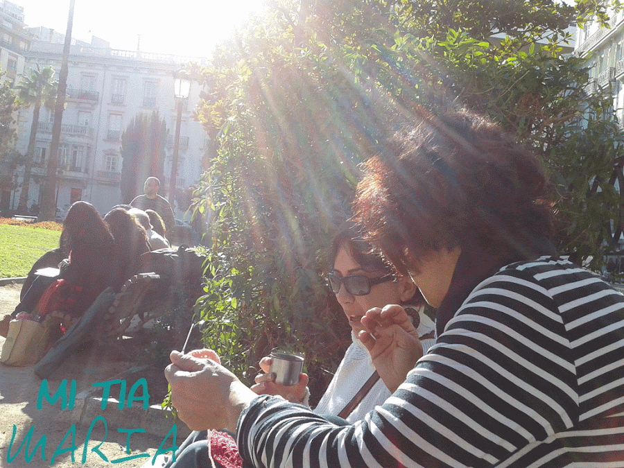 El pasado sábado tuve el gusto de conocer a Laura Serradilla en persona, ya que nos citó en "El Parterre" (un parque de Valencia) para que tejiéramos juntas nuestros "mandalas" para el proyecto y así poder poner cara a algunas de las personas que participamos.