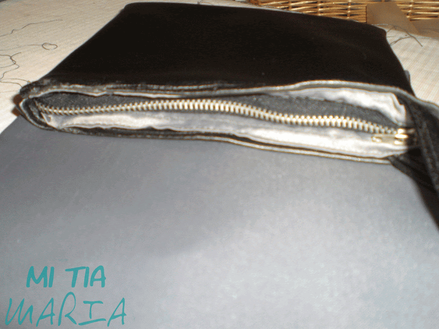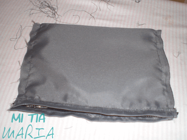 Montamos la bolsa de forro con cremallera aprovechando el trocito que habíamos dejado.