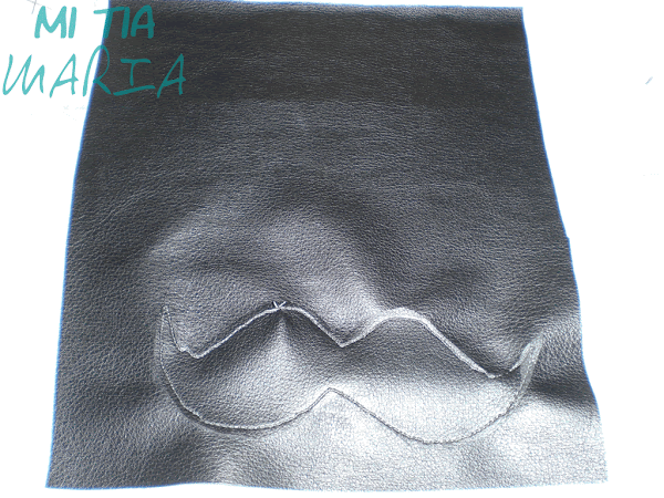 Doblamos el trozo de polipiel por la mitad con el derecho hacia dentro, cosemos las costuras laterales y damos la vuelta sacando las esquinas con cuidado.