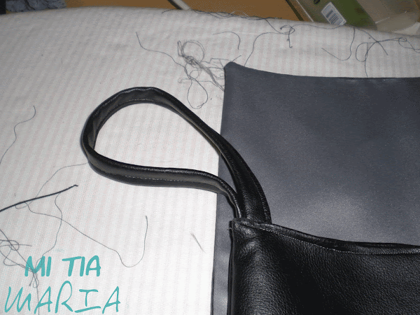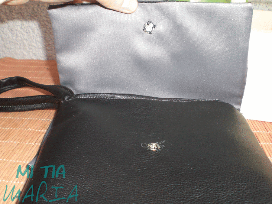 Os recomiendo que dejéis esta abertura en la parte de detrás del bolso, así quedará disimulada la costura a mano y si aprovechabais coséis la tapa al conjunto a la altura de la abertura quedará cerrada sin más....