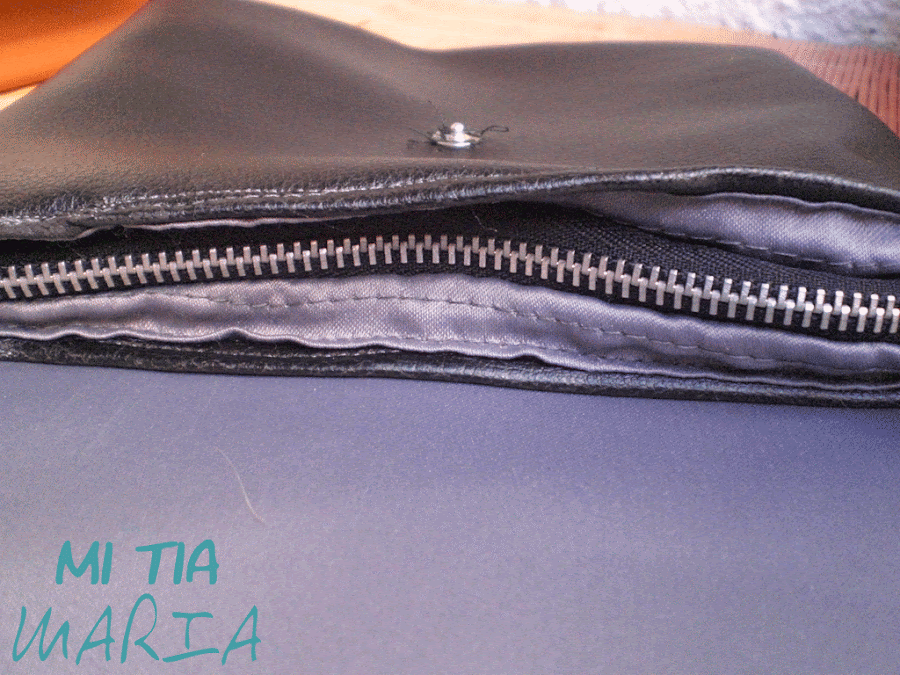 Y aquí el súper fallo.... Me tocó coserle a mano un automático, ya que se me olvidó montarle el flamante cierre magnético que tenía para él antes de empezar a coser las capas que forman la tapa....