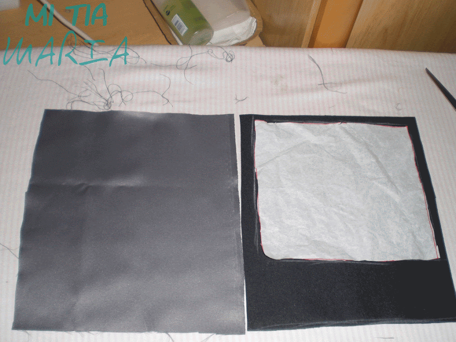 Cortamos un trozo de polipiel y uno de forro de 20 x 34 cm