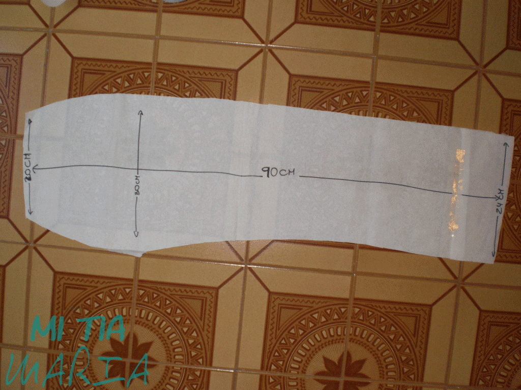 He puestos unas medidas para que tengáis una referencia, pero será más fácil si sacáis el patrón de un pantalón vuestro. De esta pieza son dos, evidentemente una para cada pierna jajajaja