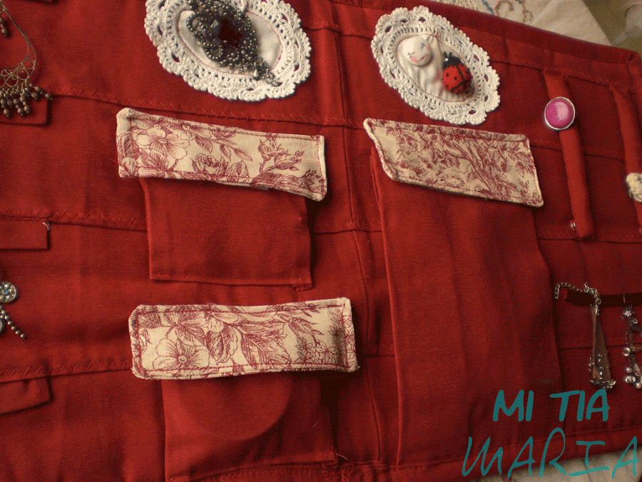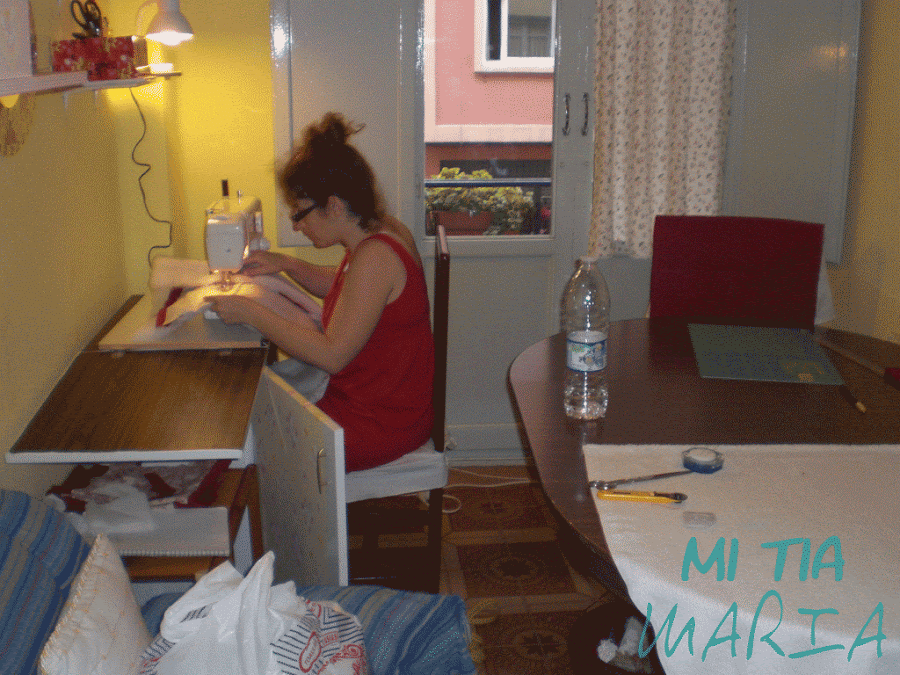 Hoy vengo a contaros la historia de un joyero de viaje... Lo he hecho con tela y guata, por eso se me ve en esta foto cosiendo y me inspiré en uno muy pequeño (excesivamente pequeño) que le regalaron a mi hermana como detallito en una comunión (si lo encuentro os subo una foto)