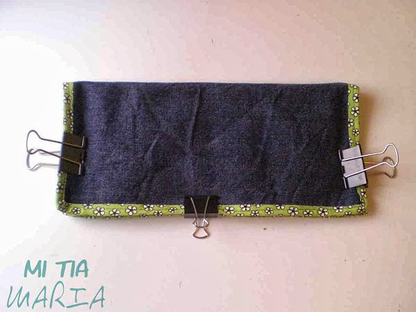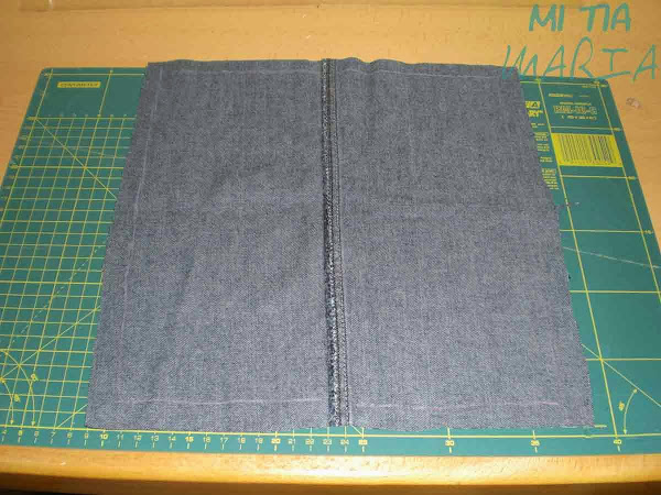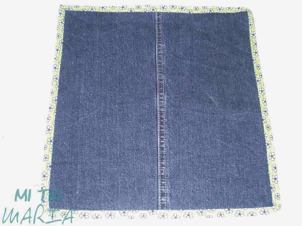 Por otro lado hacemos lo que nos servirá de portadas. Yo he utilizado un camal de pantalón vaquero y una tela de rayas.