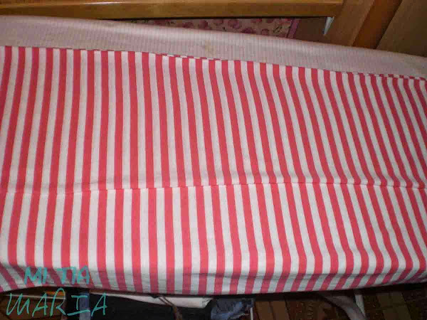 El turno de la nueva vida le llegó a este pobre que ya no tenía más posibilidades como pantalón. La tela de rayas la compré hace varios meses yendo de compras con una amiga.