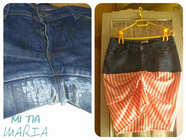 Hoy vengo a enseñaros otro modelo de falda que podemos hacer para aprovechar los pantalones viejos.