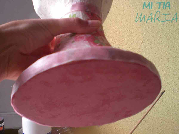Después decidí decorar sólo la parte de abajo, como si de un cuello se tratara para no quitar protagonismo al tocado que va a ir en ellas, con la técnica del decuopage.