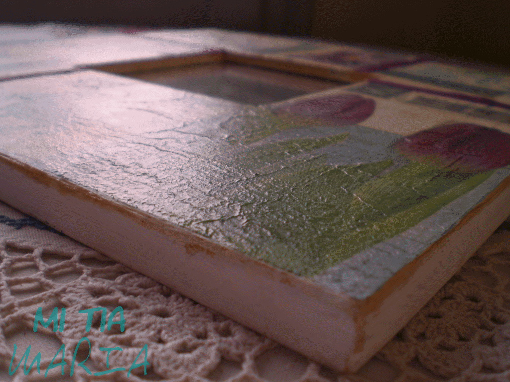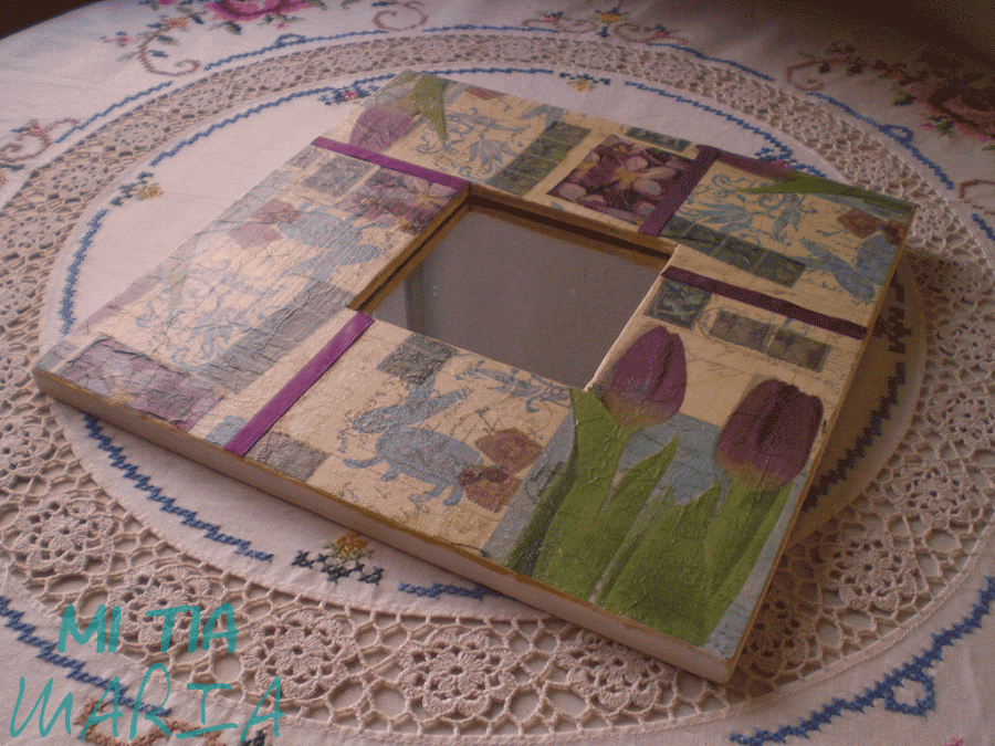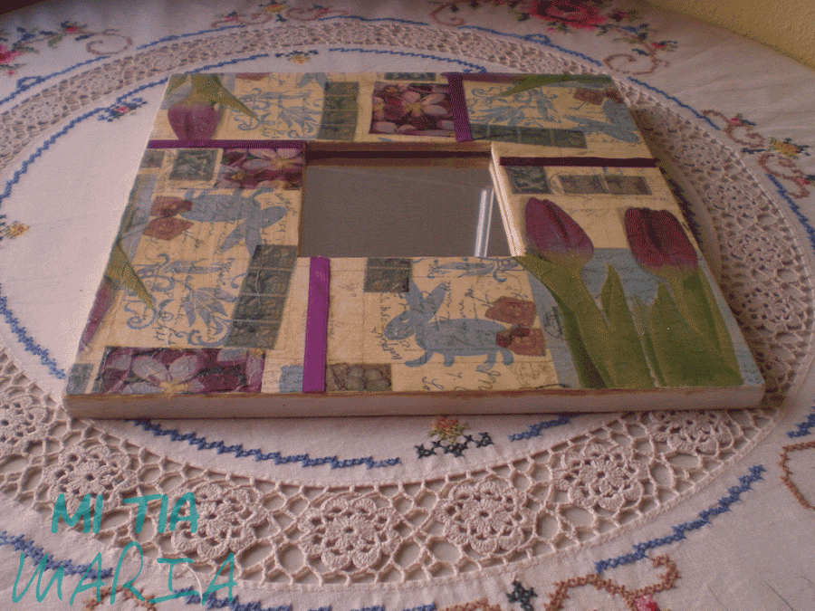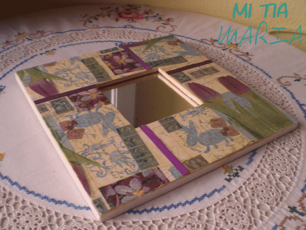 Os enseño un malma (ya sabéis que me encantan.....) tan sólo hay que pintarlo de blanco, decorarlo con la técnica del decoupage (tenéis el tutorial aquí) y luego pegar unas cintas de raso a juego para tapar las juntas de los trozos de servilleta. Mano de barniz incoloro. Un poco de lija para desgastar los cantos y darle ese toque tan personal que le da el envejecido y listo....