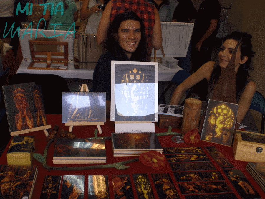 En esta foto podéis ver a Senda a la derecha, la mano creadora. Y en el centro a Fredy que es comercial y churry de la artista. Está hecha en el puesto que tenían en la zona de mercadeo....