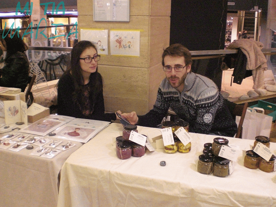 Y entre ilustraciones y conservas naturales podéis encontrar a Eva Carot, una de las organizadoras, amiga y gran ilustradora. Y a Alex.