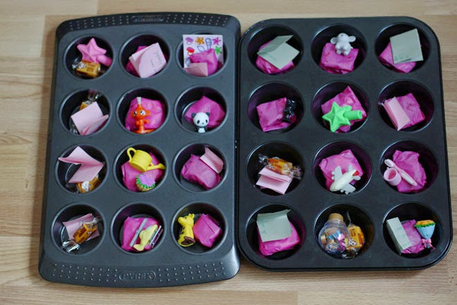 2. Rellenar cada hueco con los diferentes regalos: yo pongo una chuche fija cada día y después voy variando los juguetes y las actividades.