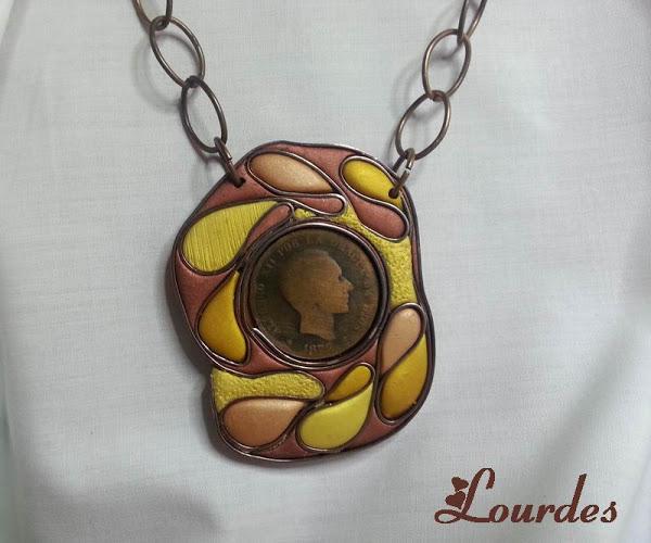 Y aquí el colgante realizado con la murrina del tutorial anterior, combinando arcilla polimérica y alambre