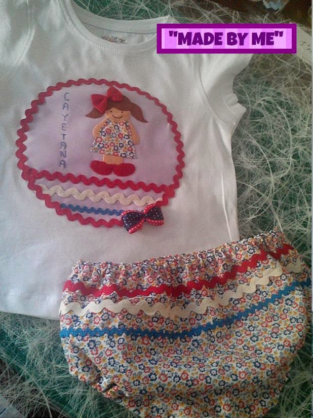 Bueno...seguimos con los conjuntos de cubrepañales y camisetas de muñequitas de "madebyme"...la verdad es que son super alegres, y encima, personalizadas con el nombre de los peques.