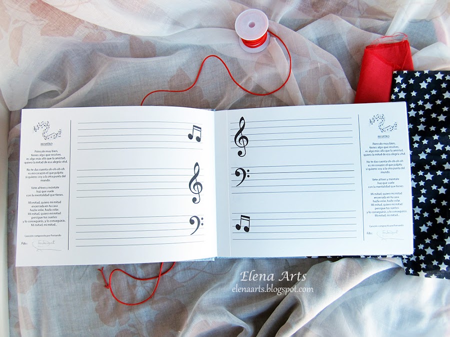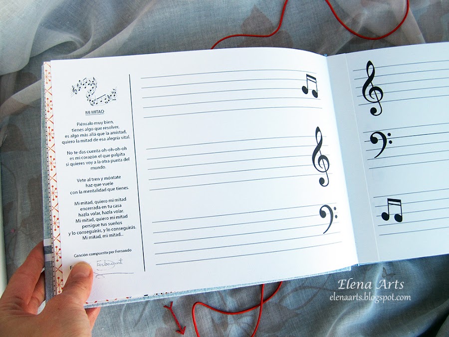 Con la tapa del libro también hubo una confusión. La nota musical en esta foto está al revés pero no me di cuenta hasta después de hacer la fotografía, la cambié pero ya no volví a hacer más fotos. A veces pasan y estas cosas :))