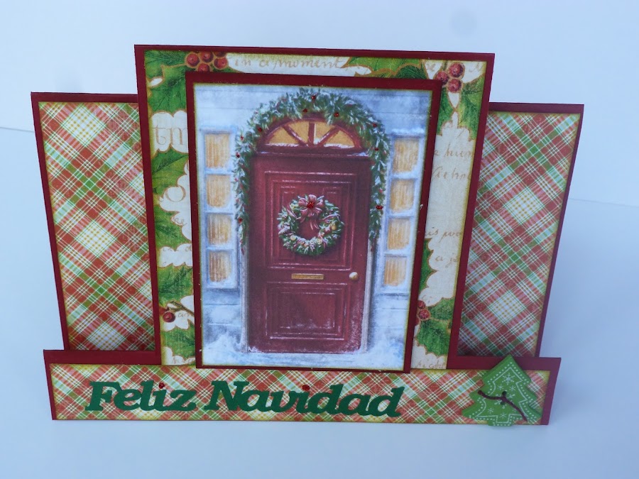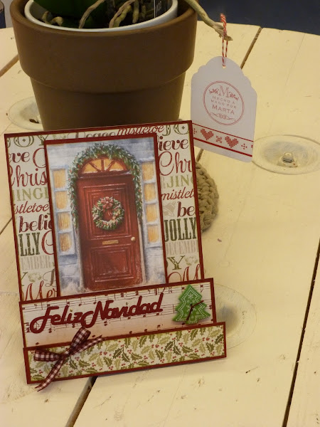 Hola, hola. Hoy os muestro una nueva tarjeta de Navidad. Era para ADA (Esther), una magnífica compañera del foro de Scrap de Facilísimo. Es una artista, de las que tiene buena mano tanto para los papeles como para las agujas. Y eso me da mucha envidia... Quería probar un nuevo formato de tarjeta, y ésta fue una estupenda ocasión. A ver qué os parece: Es una tarjeta desplegable, que cerrada queda ...
