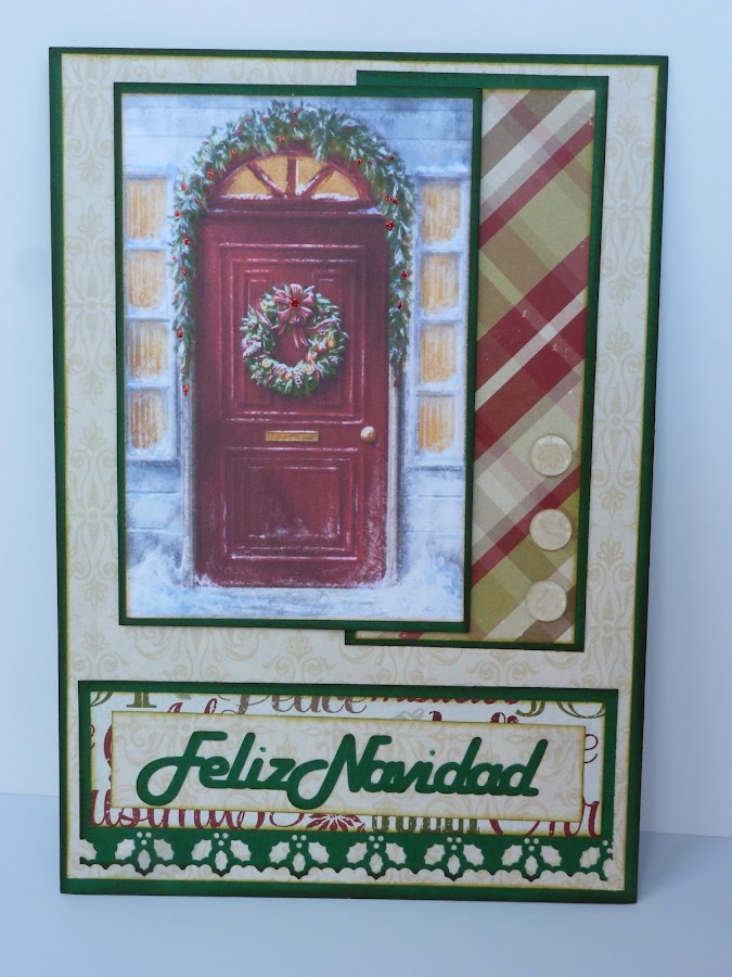 Hola, hola. Hoy os enseño cuatro versiones de una tarjeta de Navidad con la misma imagen, una puerta preciosa. El cambio de papeles de scrap y la forma de la tarjeta hace que se parezcan, pero sean a ...