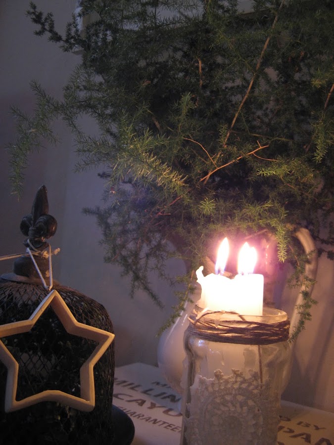Las ramas iluminadas las tengo desde hace 2 o 3 años....fijaos si estoy loca a veces, que se me olvidó sacarlas la Navidad pasada, es que ni me acordé de ellas..